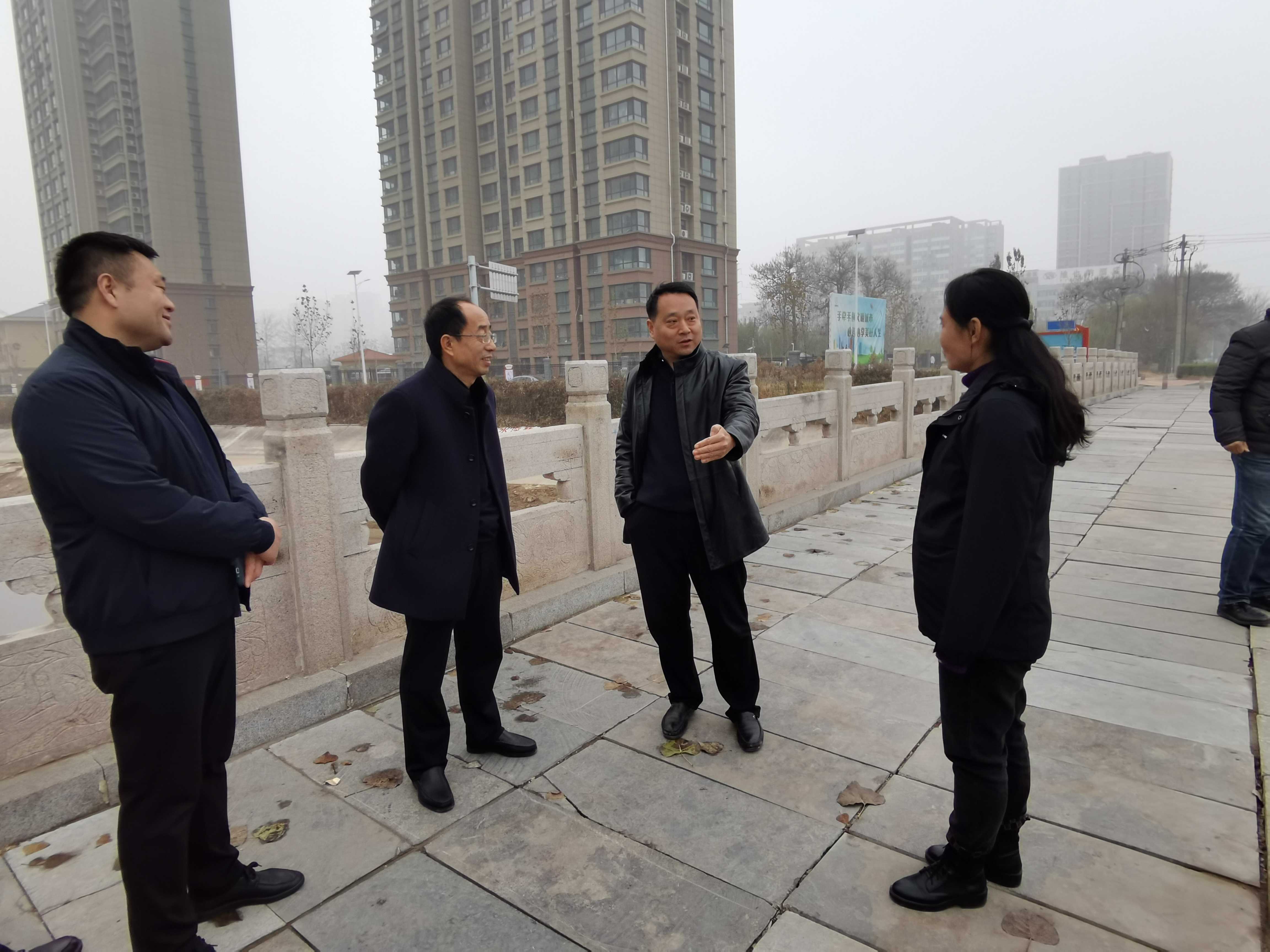 為加快項目推進速度,20201211日,財金公司董事、總經(jīng)理于雪格帶領(lǐng)泰岳公司相關(guān)人員會同聊城市城市管理局市政管理科科長張朝舉、市政管理處高杰同志現(xiàn)場辦公,實地踏勘并研究了污水接入城市污水系統(tǒng)方案,為項目的順利開工掃清了障礙。