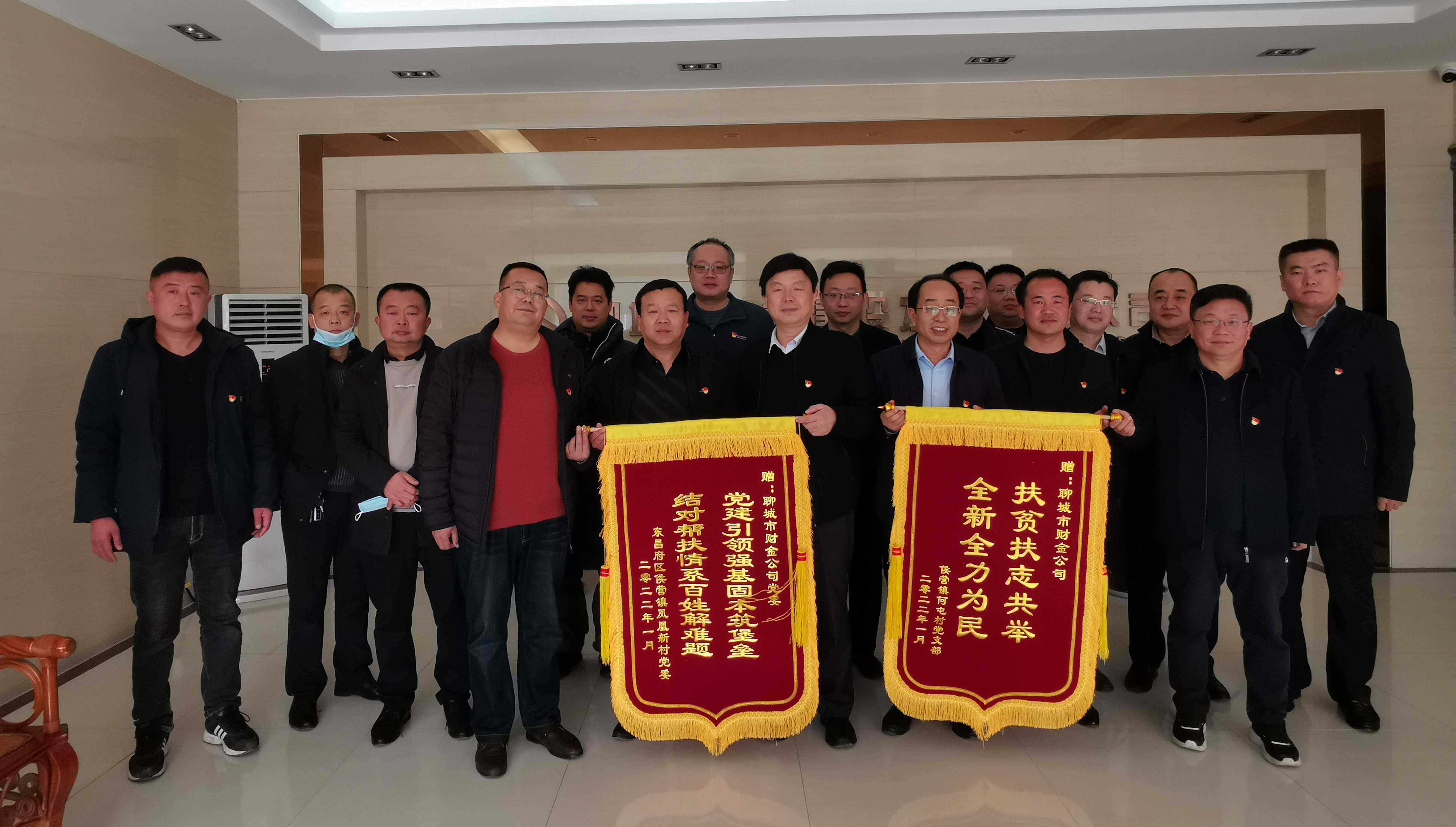 1月25日上午,東昌府區(qū)侯營鎮(zhèn)鳳凰新村黨委一行來到市財金公司,將兩面鮮紅的錦旗送到公司黨委書記、董事長張繼堯手中,對財金公司派駐第一書記助力鄉(xiāng)村振興、開展新春送溫暖走訪慰問活動表示感謝。雙方召開座談會,就“雙聯(lián)共建”工作進(jìn)行溝通交流,會議由公司黨委副書記、董事、總經(jīng)理于雪格主持,公司班子成員及黨員代表參加會議。
